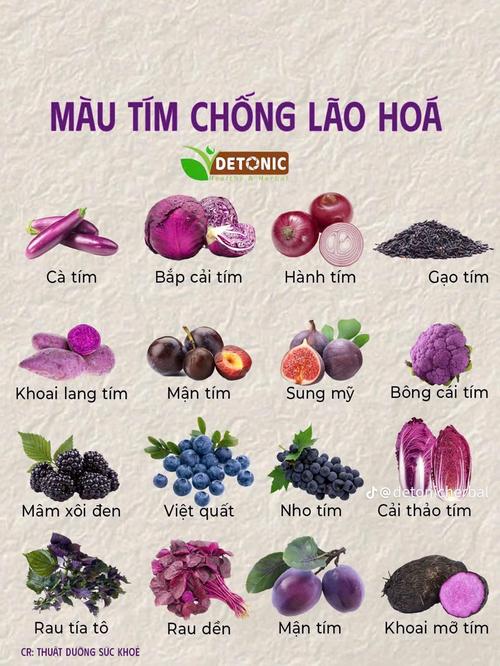 - Trái cây: Nho tím, việt quất (blueberry), mận tím, sim.