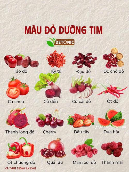 Thực phẩm màu đỏ chứa chất chống oxy hóa mạnh, rất tốt cho tim mạch và làn da.